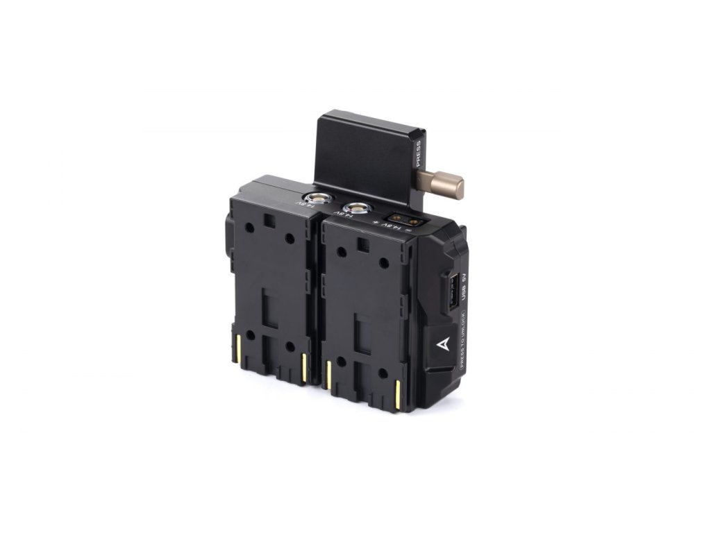Această placă pentru baterie vă permite să adaptați sloturile pentru baterie Canon BP RED Komodo la o placă a bateriei cu montare în V în poziție verticală.