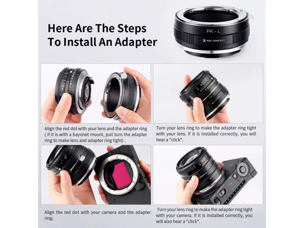 • Atașați un obiectiv Pentax K la un aparat foto mirrorless cu montură L.