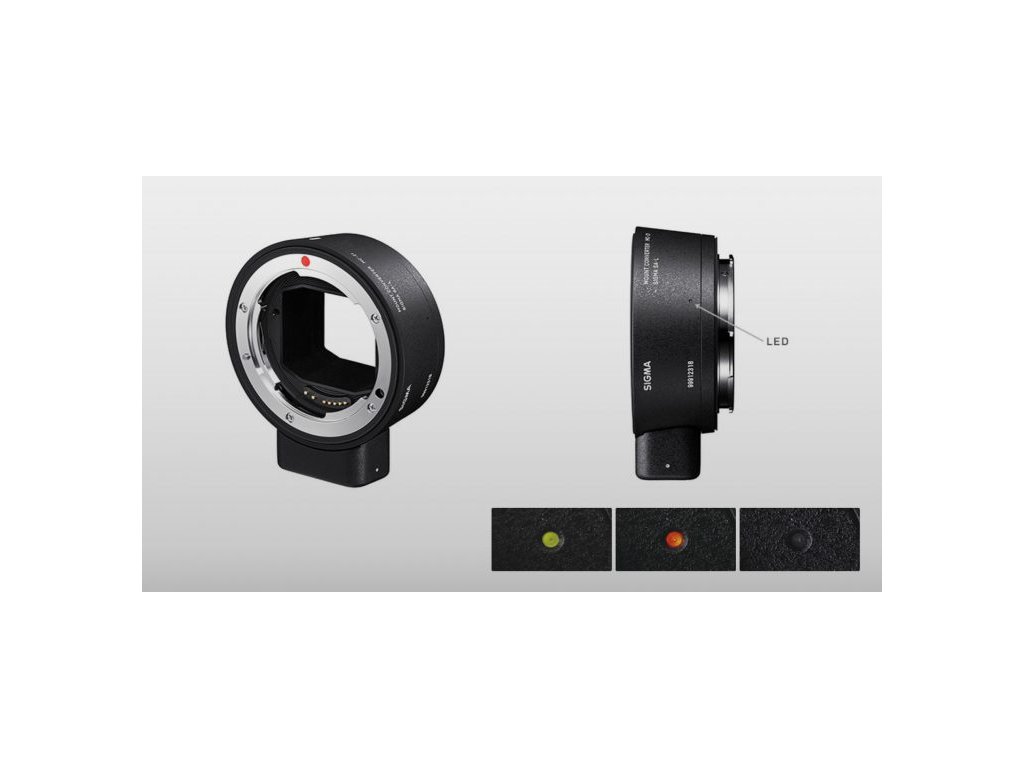 Convertorul de montură MC-21 de la marca Sigma oferă utilizatorilor posibilitatea de a conecta obiective cu montură Canon EF la camerele cu montură L (Leica, Panasonic, Sigma).LED de informații de pe convertorul MC-11 (activat când camera este pornită):
