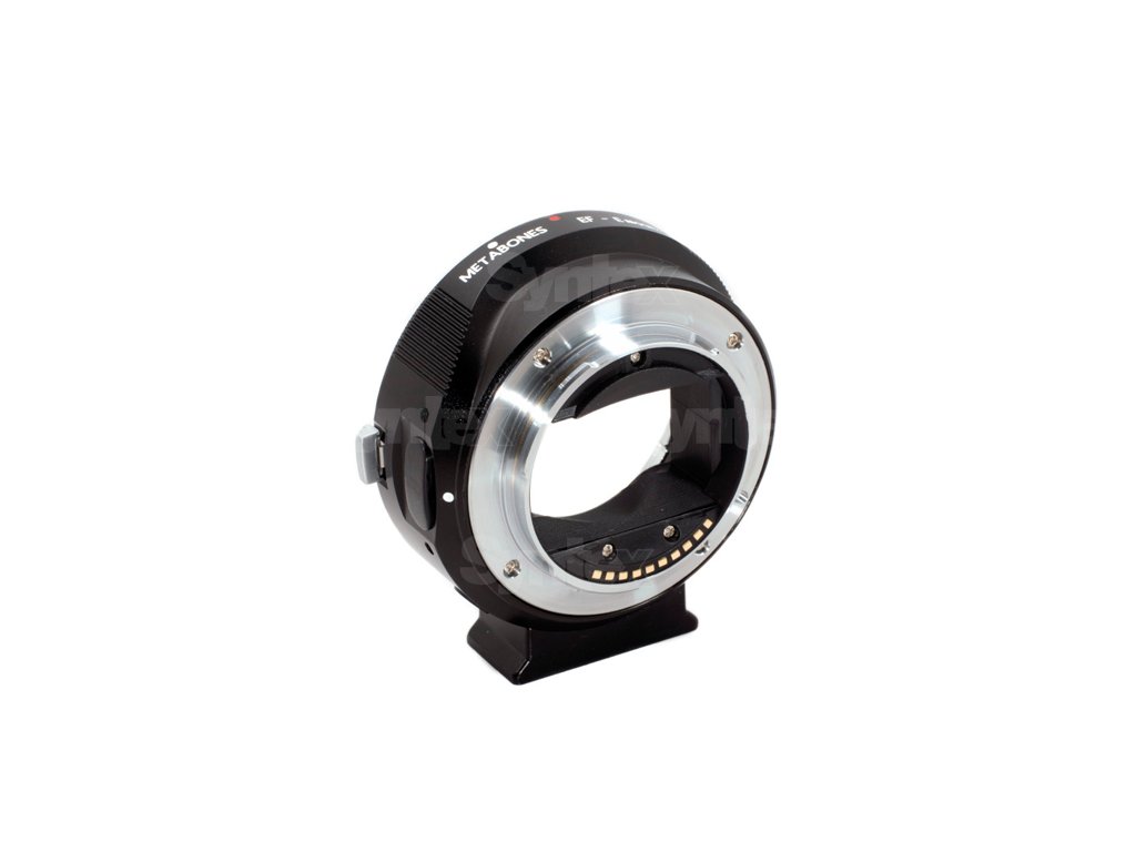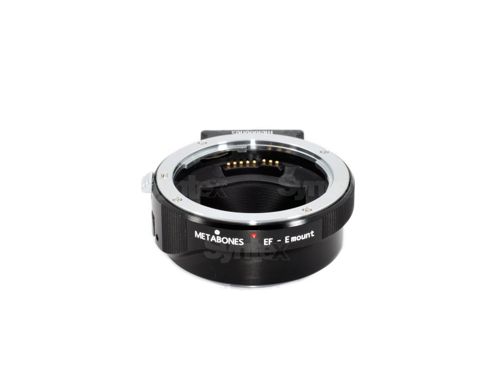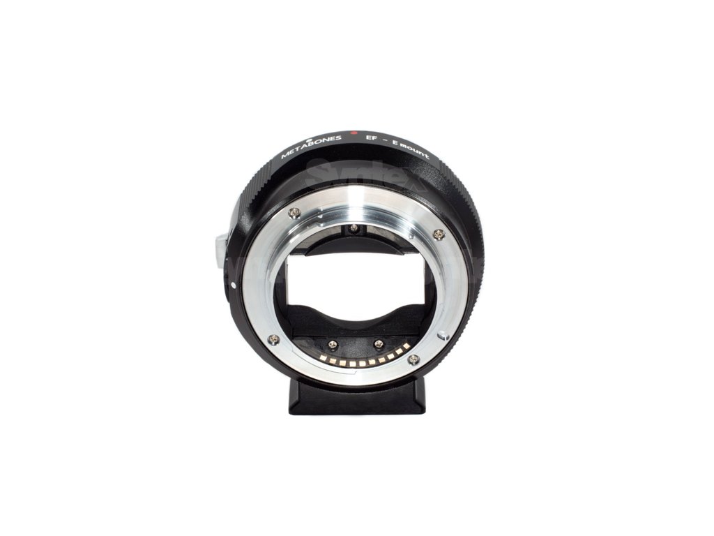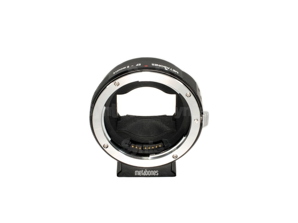 The Metabones EF pe Sony E-mount Mark Vpermite utilizarea unui obiectiv cu montură EF Canon pe un corp de cameră cu montură E, cu iris electronic, EXIF, stabilizare de imagine și autofocus.Fără amplificator de viteză.
