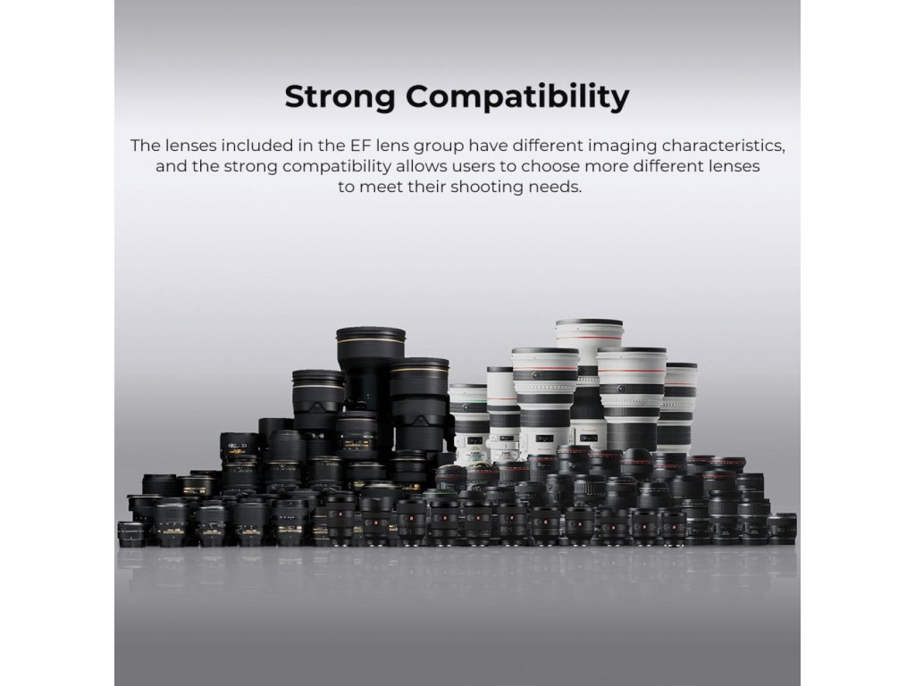 - * 2. Compatibilitate super puternică. Potrivit pentru utilizarea pe camera Canon EOS M fără oglindă, puteți transfera grupul de obiective EF/EF-S pe camera Canon EOS M fără oglindă, permițându-vă să surprindeți lucrări mai frumoase printr-o nouă combinație;