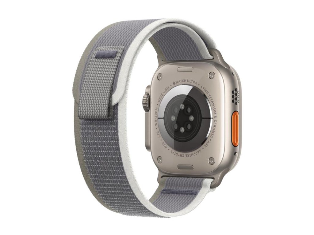 Apple Watch Ultra 2 GPS + Cellular, carcasă din titan de 49 mm cu buclă de traseu verde/gri - S/M