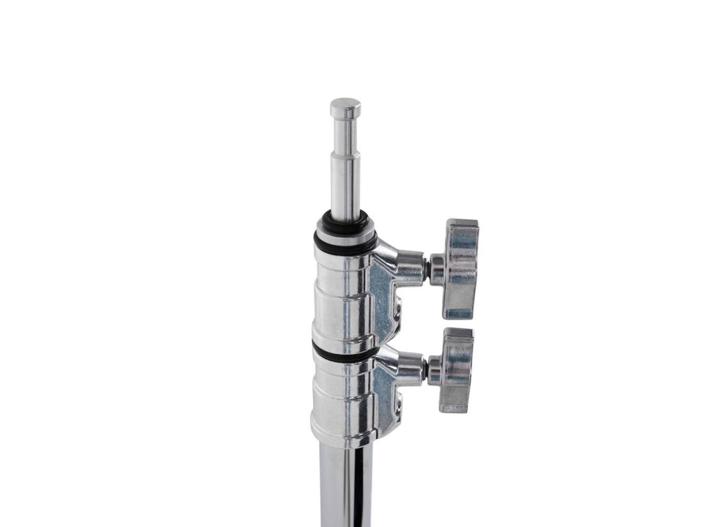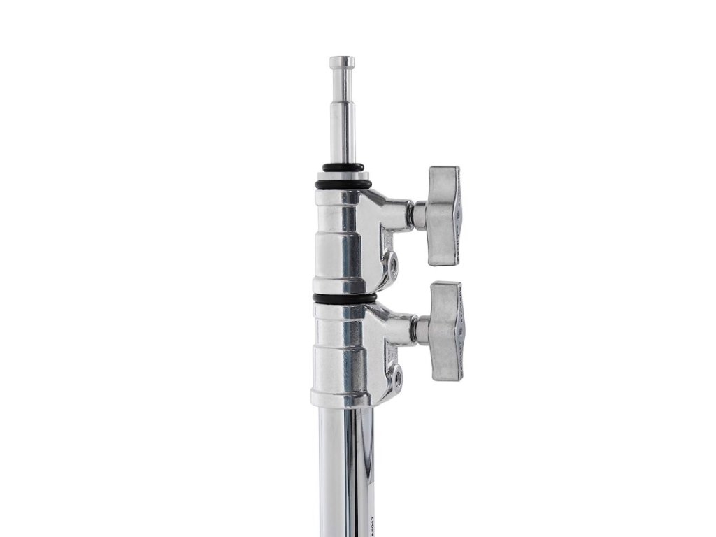 Inaltimea maxima este de 170 cm si poate sustine o sarcina de pana la 12 kg. Acest suport de bază pivotant cu frânare este excelent pentru a ține lumini, capete și alte accesorii și este foarte popular pentru utilizare în studio și la locație. Ampatamentul mic, pliabil, vă permite să puneți acest suport sub obiecte care nu sunt prea departe de sol, iar baza joasă se potrivește cu ușurință și sub suporturile C!