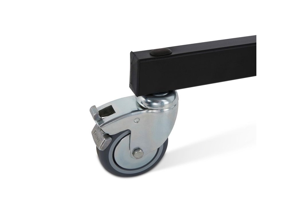 Acest suport are o bază de roată pliabilă, iar atunci când suportul este retras și roțile sunt pliate, are doar 98 cm / 38,6 lungime. Pinul pentru copii de 16 mm/5/8 inchi permite conectarea ușoară la orice dispozitiv, mâner sau receptor pentru copii.