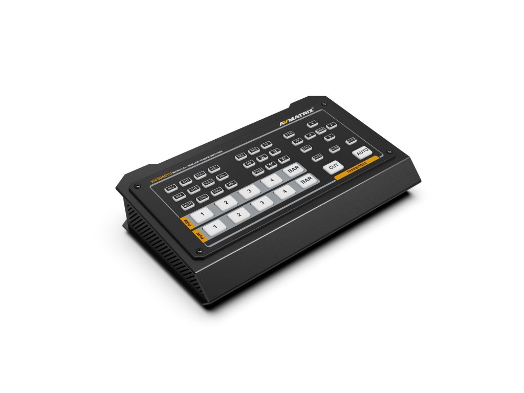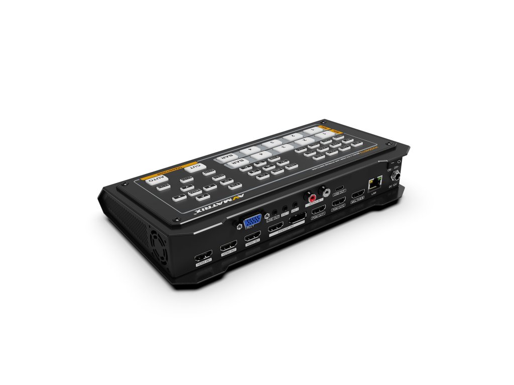 Comutați până la patru intrări video HDMI și un DisplayPort în timp ce vizionați un program cu comutatorul video HDMI și DP cu micro 4 canale AVMATRIX. Utilizați ieșirea USB-C cu computerul pentru a captura și transmite în flux. Acest comutator compact acceptă intrare și ieșire video de până la 1080p60 cu sunet încorporat și oferă mixare audio folosind două intrări și ieșiri micro/linie stereo analogice de 3,5 mm împreună cu audio încorporat. Opțiunile de control ale comutatorului includ butoane, bară T și control IP prin portul LAN.