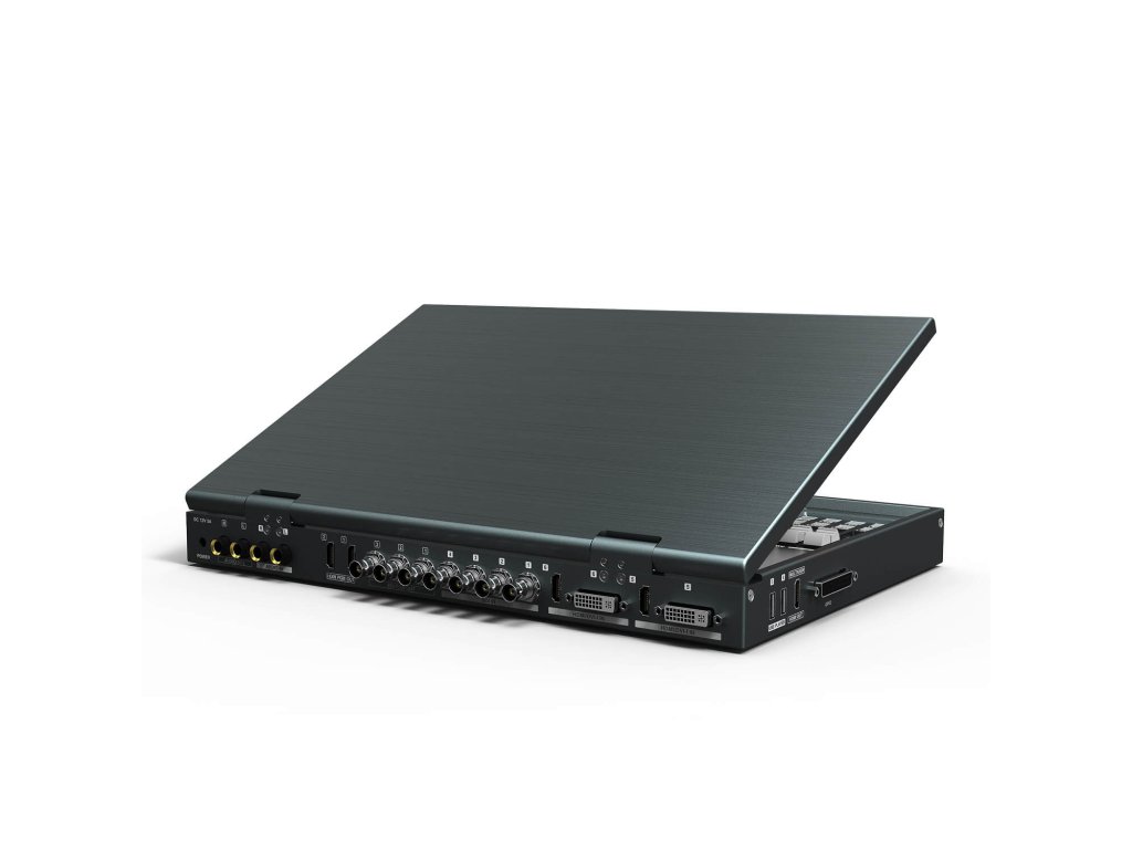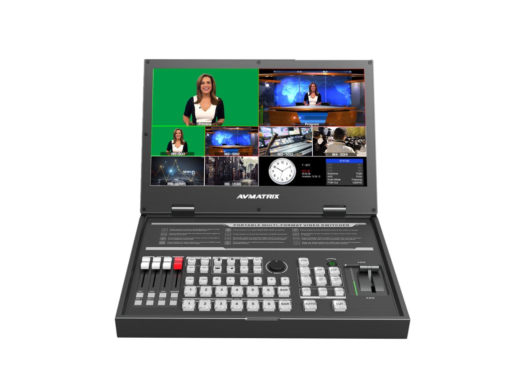 Toate semnalele pot fi scalate la 1080p60 sau 1080i60 la ieșirea PGM prin SDI/HDMI. Comutatorul este găzduit într-o carcasă metalică robustă și are un afișaj Full HD de 15,6 inchi și comenzi familiare de comutare, inclusiv o bară T. Ecranul permite monitorizarea multiview a șase surse împreună cu PVW și PGM cu audiometru.