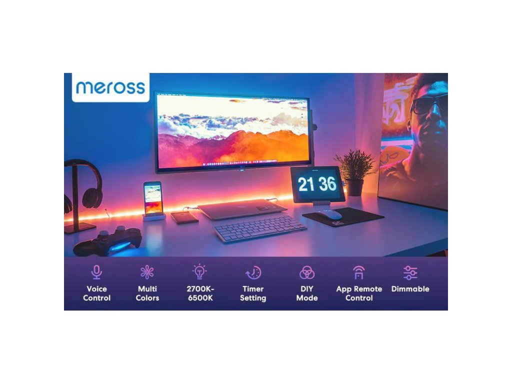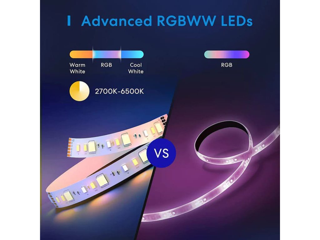 Bandă LED Meross Smart Wi-Fi RGBWW 5m, MSL320PHK (versiunea UE)