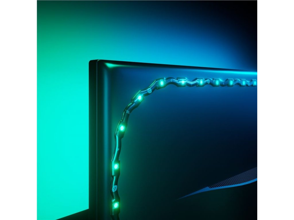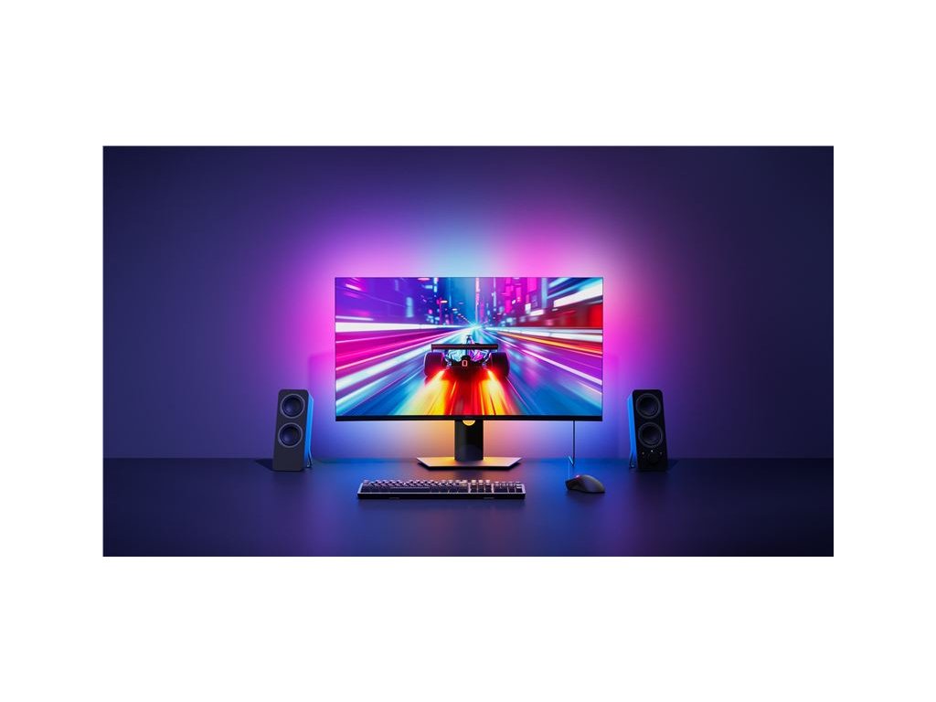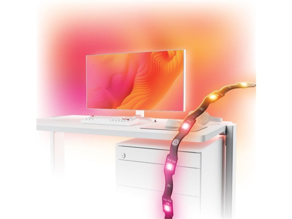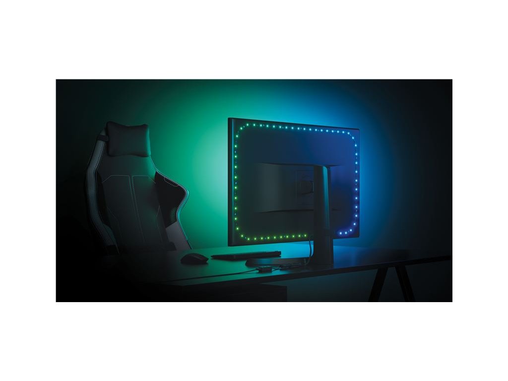 - E atât de simplu:Instalarea este ușoară datorită designului ultra-flexibil, în zig-zag, al benzii luminoase, care se adaptează perfect contururilor monitorului. Banda luminoasă poate fi pornită și oprită prin simpla apăsare a unui buton.