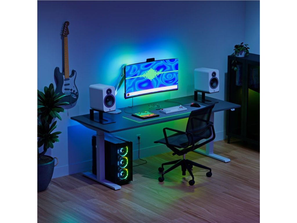 - Opțiuni de iluminare de fundal puternică:Adăugați o pată de culoare stației dvs. de lucru sau un alb personalizabil pentru o atmosferă și mai plăcută. Răsfoiți presetările noastre special create sau miile de scene create de comunitate și alegeți dintr-o gamă largă de opțiuni de iluminare distractive.