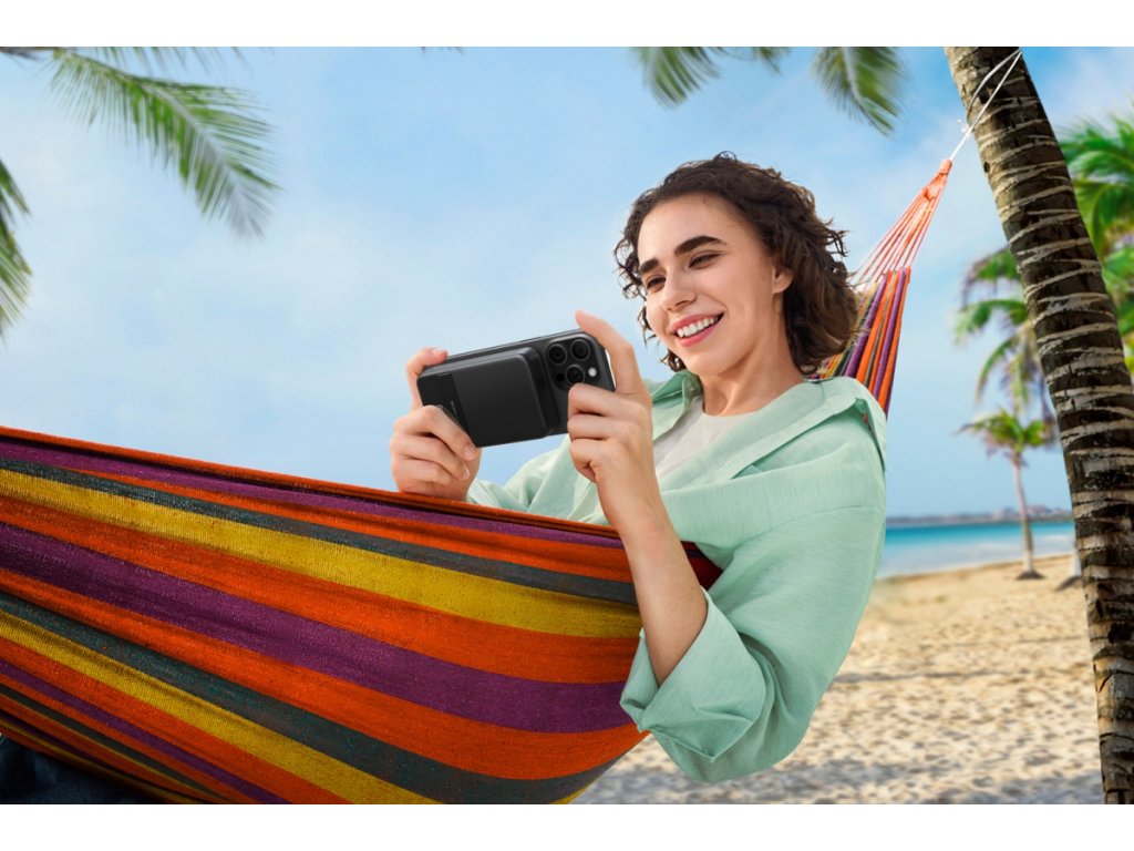 Această baterie externă combină perfect designul elegant cu caracterul practic. Acest lucru este demonstrat și de un detaliu interesant și practic: fixarea magnetică fermă a telefonului mobil cu ajutorul magneților N52 și suportul încorporat permit utilizarea acestuia ca suport care fixează telefonul mobil pe o suprafață sau în poziție verticală. Va fi pregătit pentru vizionarea confortabilă a videoclipurilor sau citirea știrilor, de exemplu.