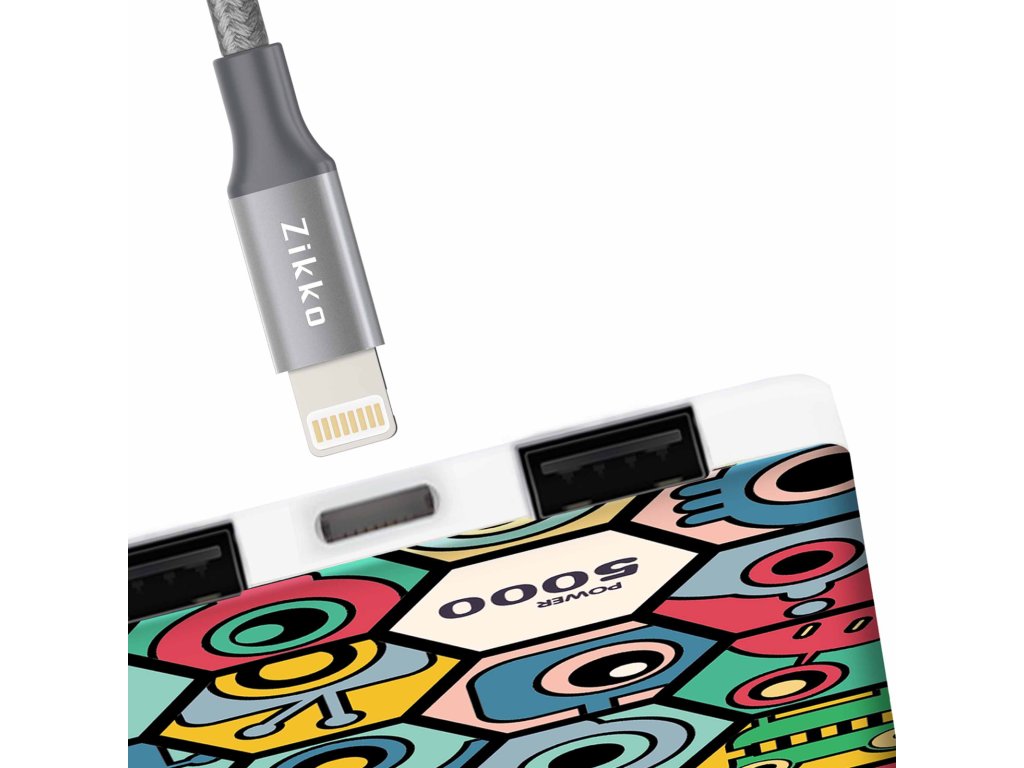 Zikko 5000mAh este prima baterie externă din lume pe care o poți încărca prin Apple Lightning. Sau în mod tradițional prin micro USB, dacă preferați. Cu toate acestea, dacă sunteți un utilizator de dispozitiv Apple, manipularea incomodă a două cabluri va fi eliminată. Zikko 5000 mAh oferă și două ieșiri USB cu o putere generoasă de 10 W, care sunt suficiente pentru conectarea simultană a două dispozitive, de exemplu, un iPhone și un iPad. Datorită dimensiunilor și greutății sale minime, Zikko 5000mAh își va găsi locul în fiecare geantă sau rucsac și chiar în portofelele ceva mai mari. Și se ascunde cu ușurință în spatele telefonului în timpul apelurilor în timpul încărcării.Pe langa facilitatile tehnice mentionate si capacitatea placuta, Zikko 5000mAh impresioneaza printr-un design cu adevarat unic in spiritul pop-art.