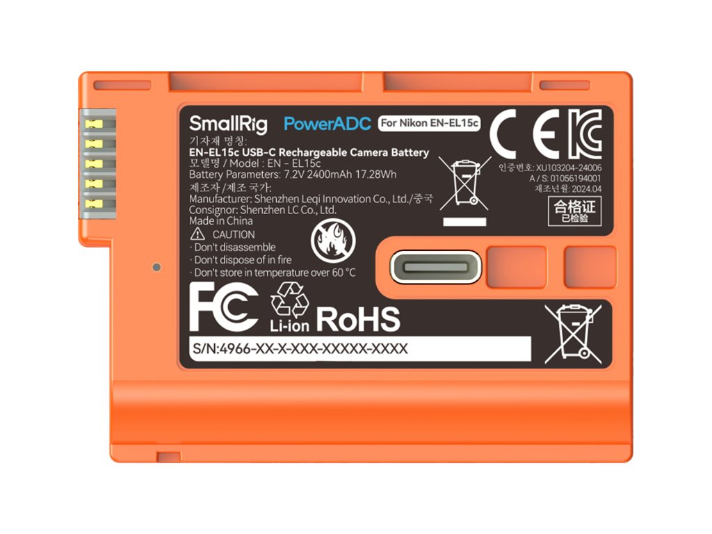 Baterie reîncărcabilă pentru cameră SmallRig 4966 EN-EL15c USB-C portocaliu