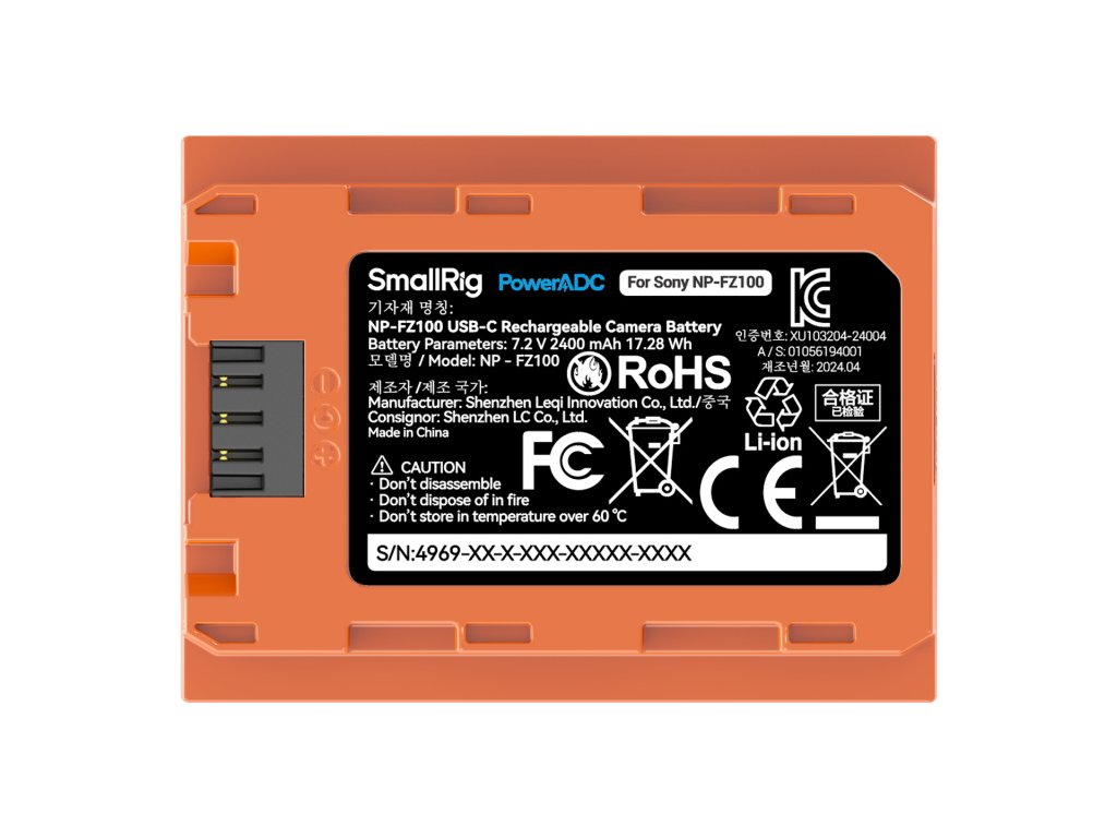 SmallRig 4969 NP-FZ100 USB-C baterie pentru cameră Portocaliu