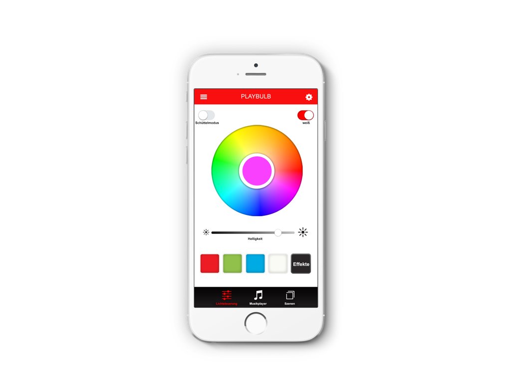 Adevărata distracție vine cu aplicația gratuită Playbulb X, care este concepută pentru dispozitivele inteligente cu sistem iOS sau Android și compatibilă cu Bluetooth 4.0 Smart. Pur și simplu glisând degetul pe afișaj, puteți scădea sau crește intensitatea luminii imediat după împerechere, ceea ce se face direct în aplicație, alegând dintre dispozitivele oferite. Puteți aprinde și stinge lumina de la distanță și, mai ales, puteți alege pur și simplu dintr-un număr incredibil de nuanțe de culoare folosind Color Picker sau pur și simplu comutați ușor între ele până când găsiți una care se potrivește cel mai bine cu starea dvs. de spirit și cu atmosfera din cameră. De asemenea, puteți activa funcția de agitare - după scuturarea telefonului, aplicația va selecta automat o nuanță aleatorie. Distracție ideală pentru petrecere!