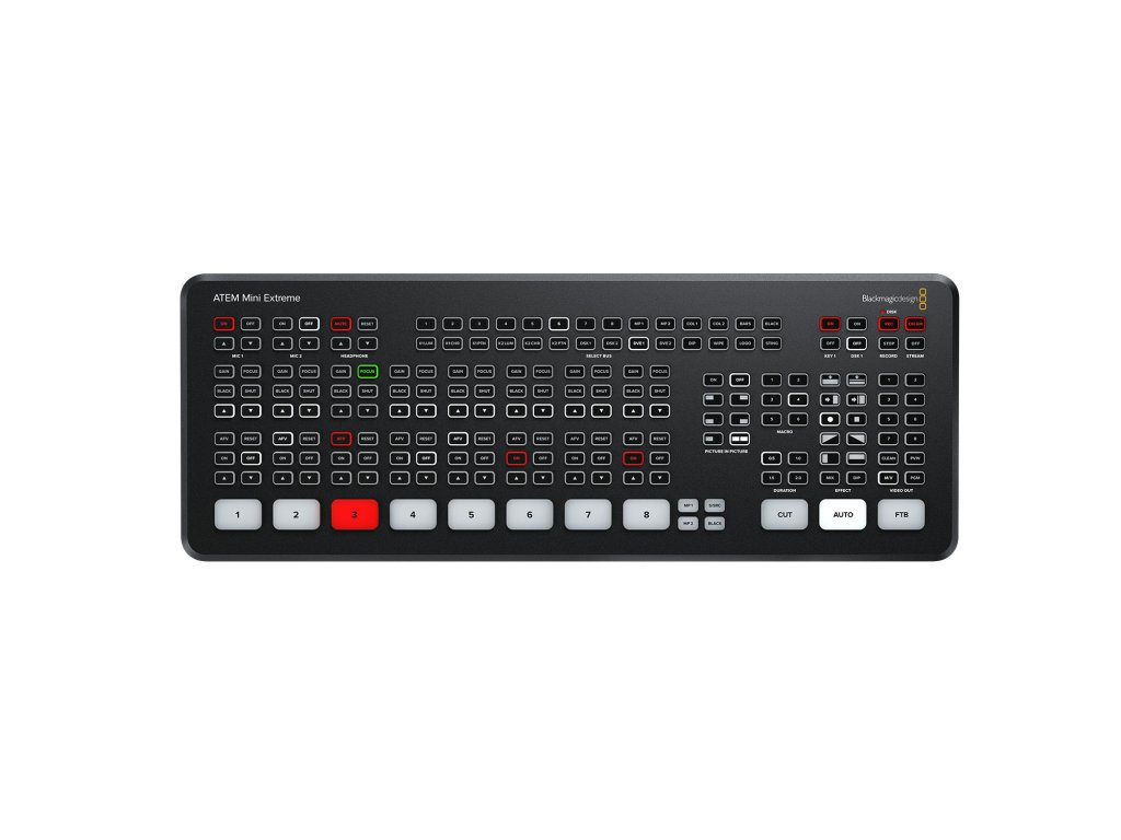 Blackmagic Design ATEM Mini Extreme este un nou model masiv mai mare al comutatorului de producție live ATEM Mini. Acest nou model este cel mai avansat comutator 1 M/E de la Blackmagic Design, cu 8 intrări, 4 cheie CHroma avansate ATEM, un total de 6 DVE independente, 2 playere media, 2 cheie în aval, vizualizare multiplă cu 16 căi, 2 conexiuni USB și multiple auxiliare. conectori HDMI. iesiri. Există, de asemenea, o variantă ATEM Mini Extreme ISO care include toate aceste funcții puternice plus un motor de înregistrare mai puternic care poate înregistra toate cele 8 intrări plus un program pentru un total de 9 fluxuri de înregistrare. Ambele modele noi includ un motor de streaming de calitate broadcast pentru streaming live pe YouTube, Facebook, Twitter și multe altele.