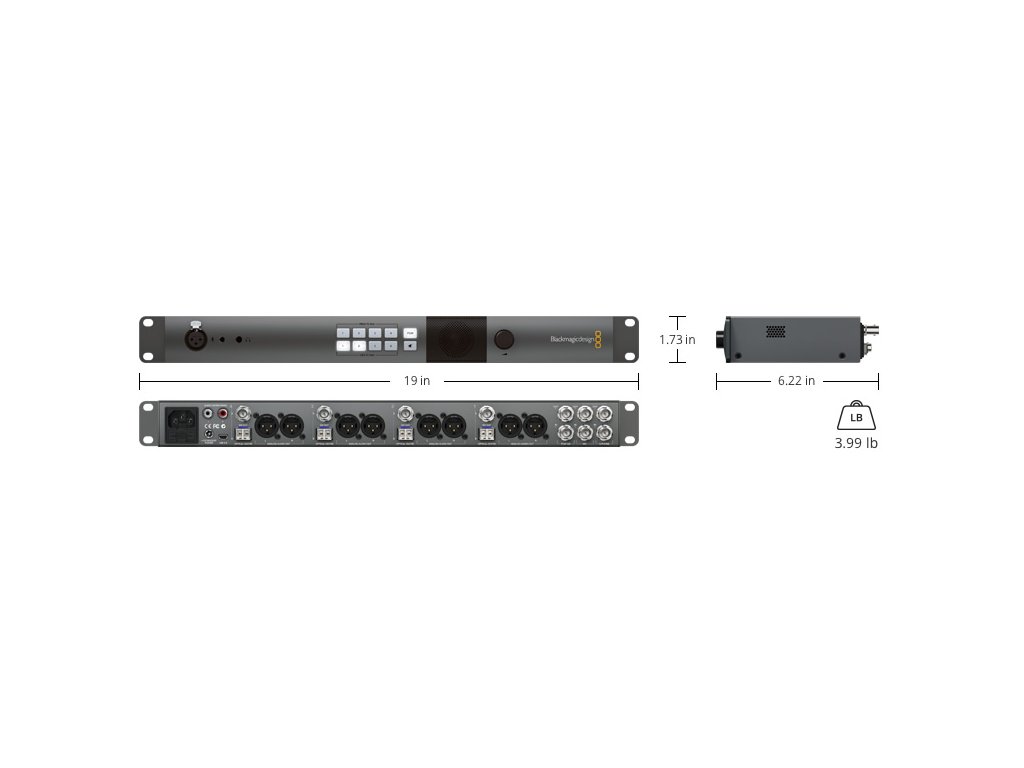 Convertoare pentru conversia inversă la semnal SDI, inclusiv ieșire audio încorporată pe o pereche de conectori XLR.