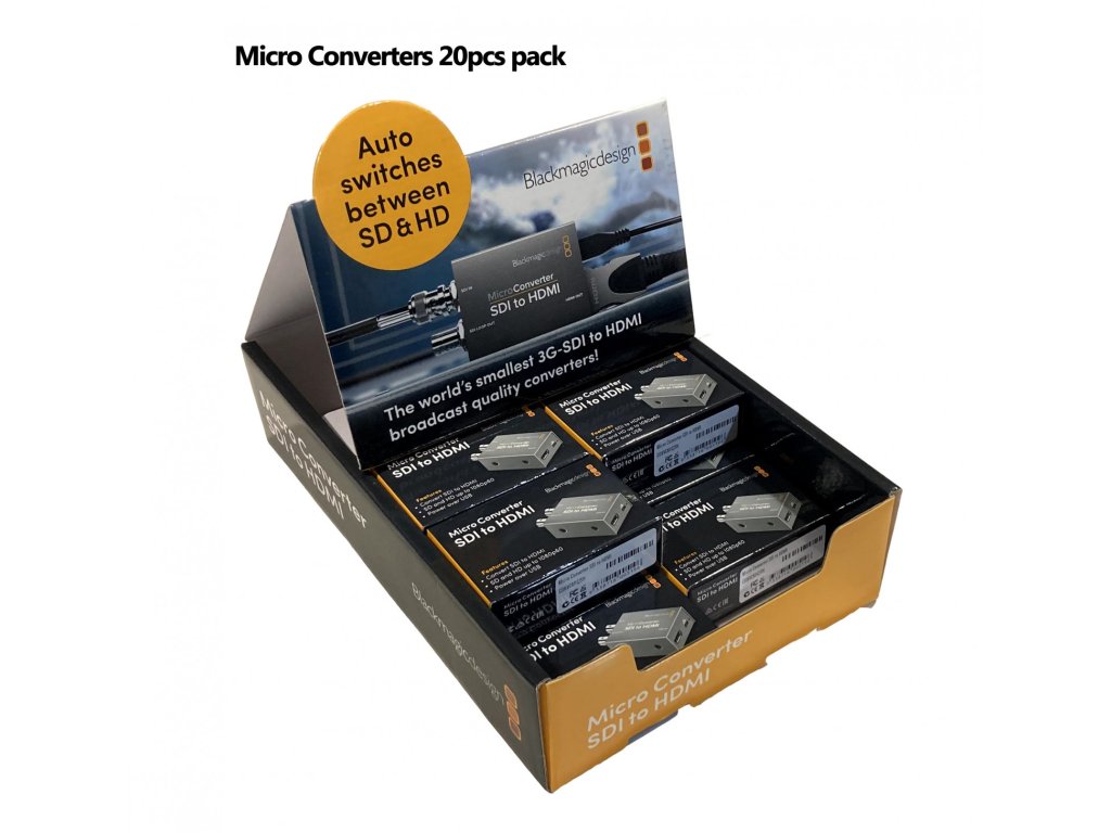 Spre deosebire de alte convertoare SDI mici, convertoarele Blackmagic Micro dispun de tehnologie de transmisie de cea mai înaltă calitate, miniaturizată într-o carcasă metalică incredibil de puternică. Fiecare convertor are conexiuni 3G-SDI și HDMI standard din industrie cu conectori puternici de înaltă calitate. Blackmagic Micro Converter include o conexiune USB pentru alimentare, precum și modificarea setărilor folosind utilitarul de conversie pe Mac și Windows. Deoarece USB alimentează convertorul, clienții îl pot alimenta și de la televizoare sau laptopuri. Există, de asemenea, LED-uri pentru alimentare și starea video. Clienții pot achiziționa și convertoare Blackmagic Micro AC, inclusiv 4 adaptoare pentru uz internațional.