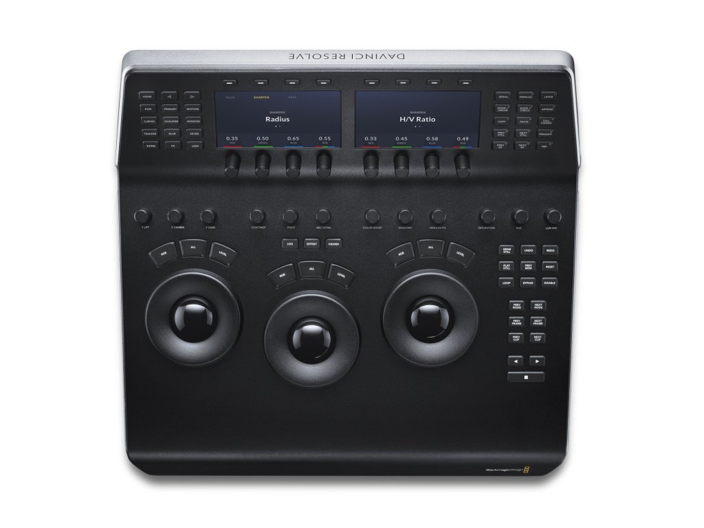 DaVinci Resolve Mini Panel este un panou de control hardware compact, care este ideal pentru adăugarea de gradare a culorii oricărei stații de lucru și pentru freelanceri care trebuie să ia panoul cu ei atunci când călătoresc între dispozitive. DaVinci Resolve Mini Panel are 3 trackball-uri de înaltă rezoluție, 12 butoane de control dedicate pentru instrumente puternice de corectare a culorilor primare, 18 taste dedicate de navigare și transport și o platformă superioară cu două ecrane de 5 inchi, 8 butoane de control și 8 taste soft dedicate. taste pentru comutarea instrumentelor, lucrul cu noduri, captarea imaginilor statice, navigarea în cronologia și multe altele.