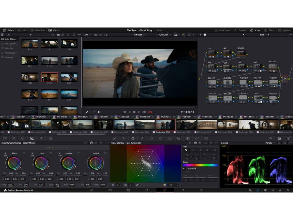 DaVinci Resolve combină funcții puternice și performanță în timp real, astfel încât creativitatea dvs. să nu încetinească niciodată! Obțineți următoarele instrumente incredibile; Etape nelimitate, primar, secundar, reîncadrare optică, urmărire a obiectelor 3D, stabilizare a imaginii, gamă dinamică mare, amestecare RGB, curbe personalizate, sortare personalizată a curbelor HSL, ferestre puternice, sortare grupată a clipurilor, cronologie dinamică, liste de decizii de culoare, fotografii și galerii de note , Gestionarea metadatelor, exportul 3D LUT de pe scenă, etapele de copiere și inserare, marcatoare de zonă sigură, presetări de întrerupere și multe altele!