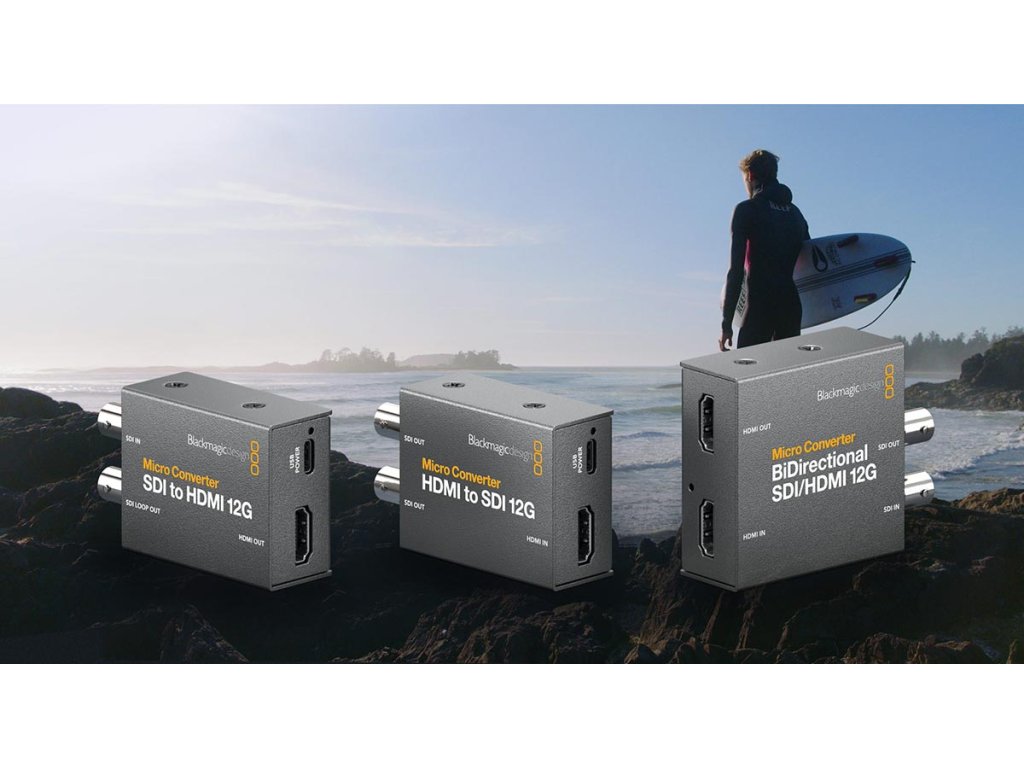 Noile Micro Convertere Blackmagic sunt convertoare video de difuzare incredibil de mici care permit clienților să se conecteze între echipamentele HDMI de consum și SDI profesionale. Designul robust și miniaturizat le face suficient de mici pentru a fi folosite oriunde. Clienții beneficiază de o conexiune profesională 3G-SDI sau 12G-SDI, în funcție de model, astfel încât clienții pot lucra cu formate SD, HD și Ultra HD de până la 2160p60. Micro convertoarele folosesc USB pentru alimentare, astfel încât pot fi alimentate direct de la televizoare sau laptopuri. Clienții le pot cumpăra și fără surse de alimentare. Doar Blackmagic Micro Converter conține propriile sale electronice care îndeplinesc specificațiile globale de difuzare și pot fi actualizate la noi standarde în viitor.