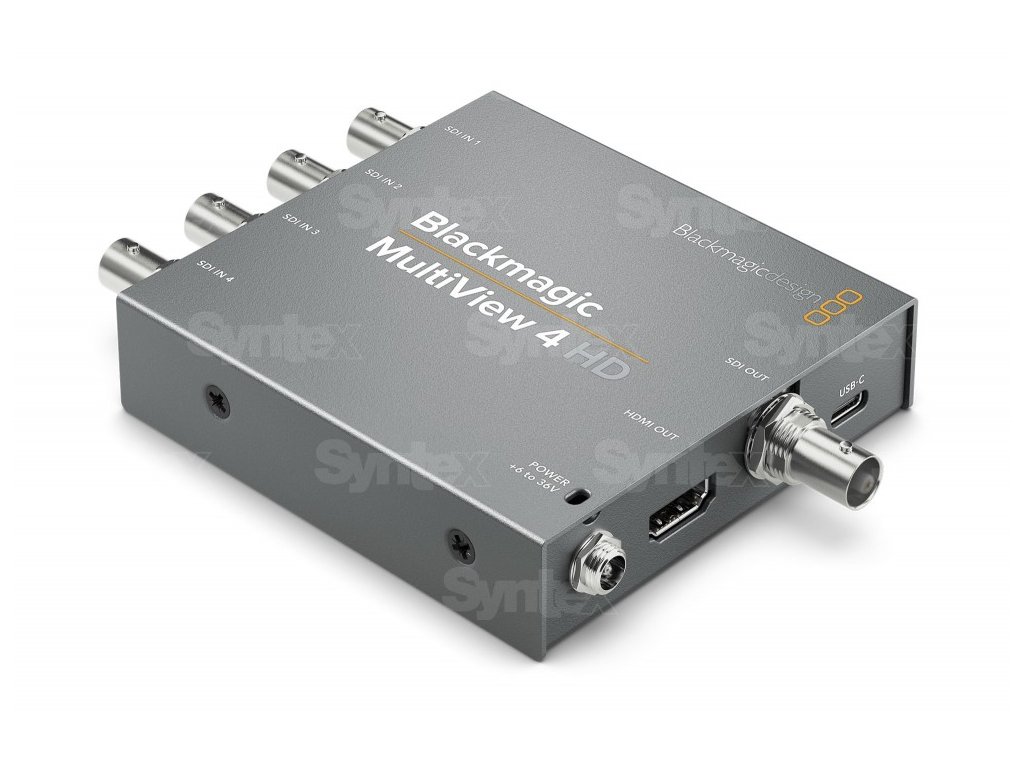 Blackmagic MultiView 4 HD este un nou multiviewer care permite clienților să vizualizeze 4 surse video SDI complet independente pe un singur ecran. Clienții pot viziona orice combinație de formate SD și HD și ratele de cadre simultan. Blackmagic MultiView 4 HD are atât ieșiri SDI, cât și HDMI, astfel încât poate fi utilizat cu ecrane de difuzare SDI profesionale sau televizoare HD pentru consumatori cu ecran mare.