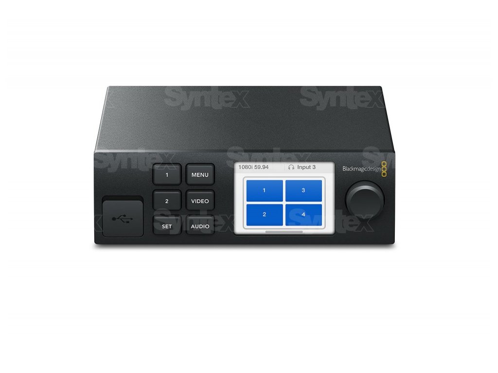 nici unul. Acesta acceptă Teranex Mini Smart Panel, care adaugă meniuri și un afișaj color de 2,2 inchi.