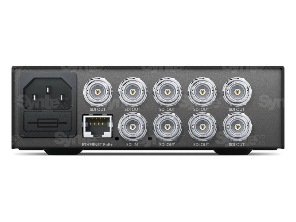 Teranex Mini SDI Distribution distribuie o intrare video SDI la până la opt ieșiri SDI. Acest model dispune de cele mai recente conexiuni 12G-SDI multi-viteză cu overclock SDI complet, care permite convertorului să comute automat între toate formatele SD, HD și Ultra HD până la 2160p60. Acesta este ideal pentru distribuirea unui singur semnal SDI către mai multe dispozitive, cum ar fi monitoare, comutatoare și codificatoare.