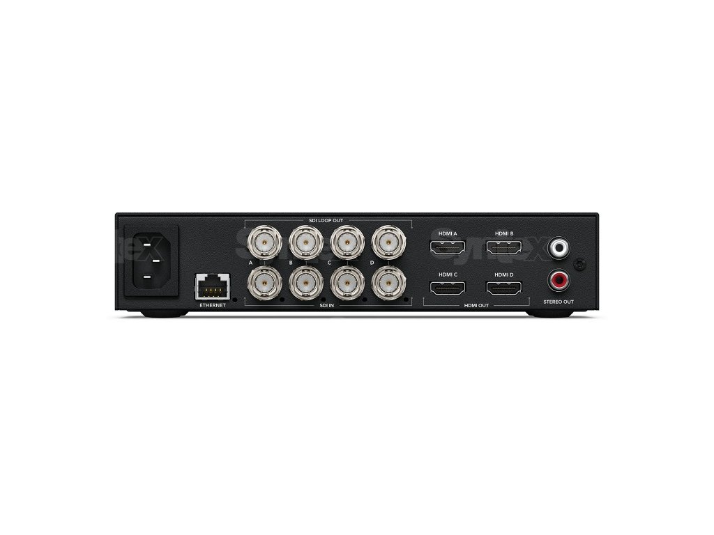 Panoul frontal LCD afișează nu numai previzualizarea video, ci și audiometrele cu balistică VU sau PPM sau format de intrare; panoul din spate include o interfață Quad-Link 12G-SDI pentru a suporta rezoluții HD, Ultra HD și 8K. Există, de asemenea, 4 ieșiri HDMI pentru televizoare și proiectoare 8K cu intrări Quad-HDMI și, desigur, funcționalitate pentru conversia video 8K în rezoluție Ultra HD sau HD, precum și conversie automată între 2SI (2-Sample Interleave) și Square Division. formate. Modelul Teranex Mini SDI la HDMI 8K oferă suport pentru cele mai recente standarde HDR, inclusiv. Formatele PQ și Hybrid Log Gamma (HLG) conform standardelor ST2108-1, ST2084 și ST425 și suport pentru spațiile de culoare Rec.2020 și Rec.709, precum și formatul DCI-P3.În vânzare din 5/2019.