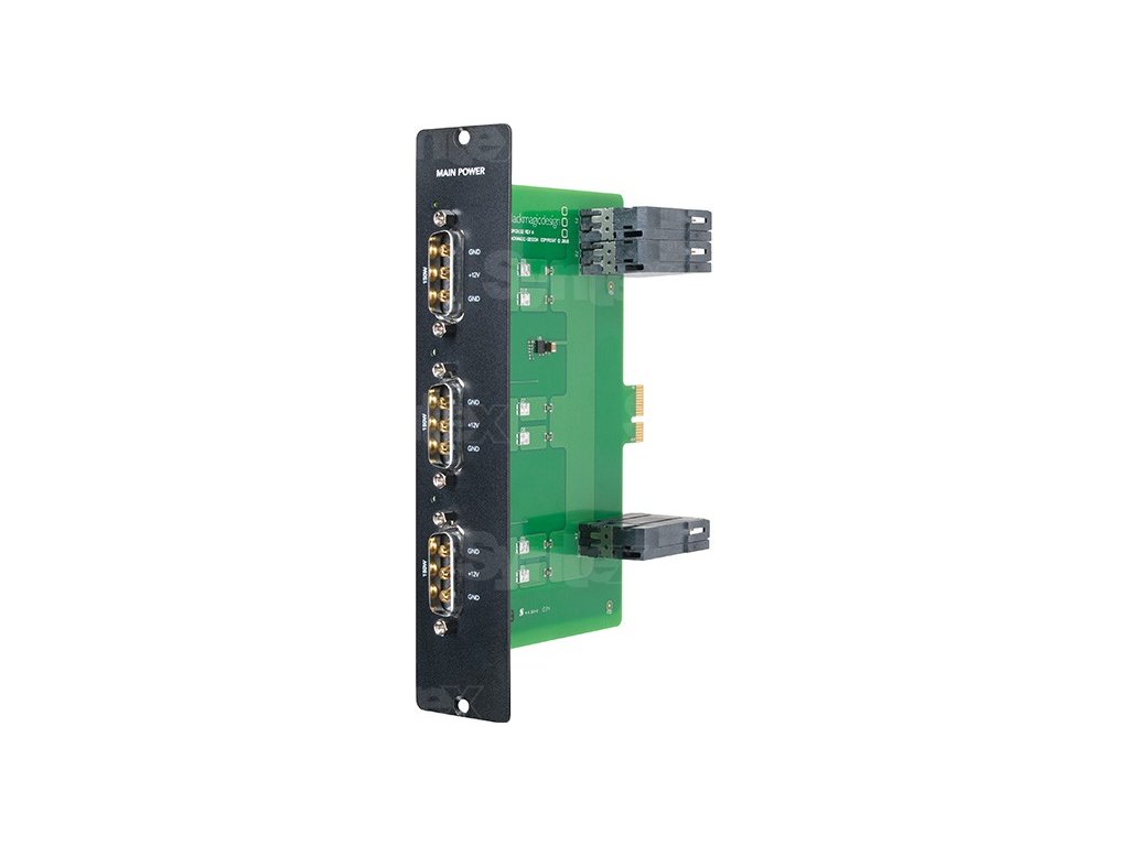 Vă permite să adăugați până la 3 „cărămizi” de alimentare externe de 12 V (vândute separat), după cum este necesar. 3 surse de alimentare vă oferă suficientă putere pentru 72 x 72 BNC SDI sau fibră optică!