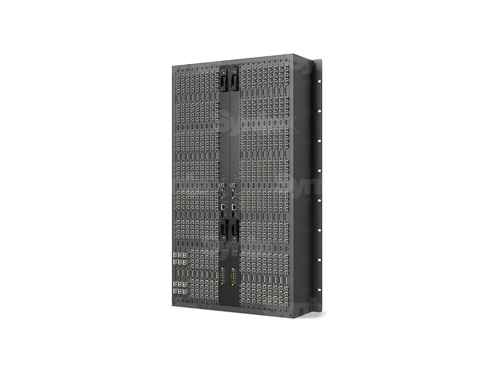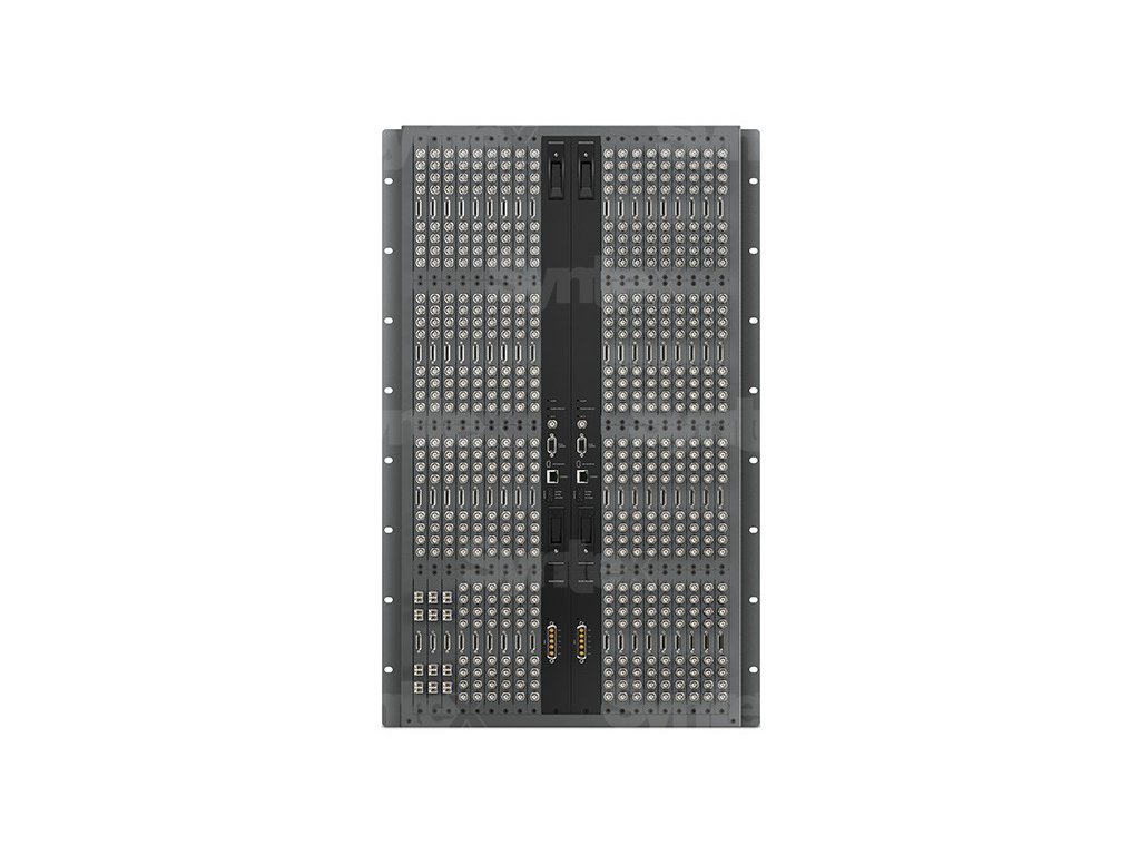 Cadrul de rack vă permite să adăugați până la 72 de interfețe BNC SDI sau Fiber SDI plus un punct de încrucișare 72 x 72 sau dublu 288 x 288 carduri și până la două carduri de putere. Adăugați un singur punct de încrucișare pentru accesibilitate sau adăugați puncte de încrucișare duble și carduri de putere pentru redundanță completă. Include tavă detașabilă pentru ventilator și ventilatoare.