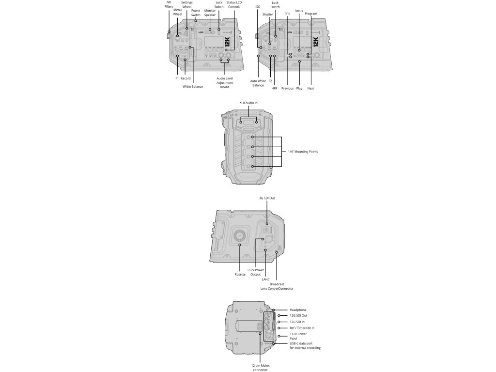 Blackmagic URSA Mini Pro 12K dispune de un nou senzor de imagine revoluționar cu o rezoluție nativă de 12.288 x 6.480, ceea ce este incredibil de 80 de megapixeli pe imagine. Senzorul are o dimensiune Super 35, 14 numere de interval dinamic al diafragmei și un ISO nativ de 800. Captează simultan cantități egale de pixeli roșii, verzi și albaștri și este optimizat pentru lucru cu rezoluție multiplă: puteți fotografia în 12K la 60 de cadre. pe secunda. sau înregistrați în 8K sau 4K RAW la până la 110 fps fără tăierea sau schimbarea unghiului de vedere. Și datorită monturii interschimbabile, puteți folosi o gamă întreagă de lentile moderne de film și vintage pentru a profita la maximum de optica lor!