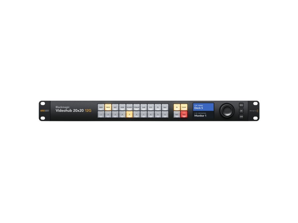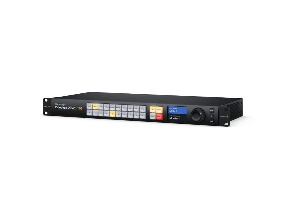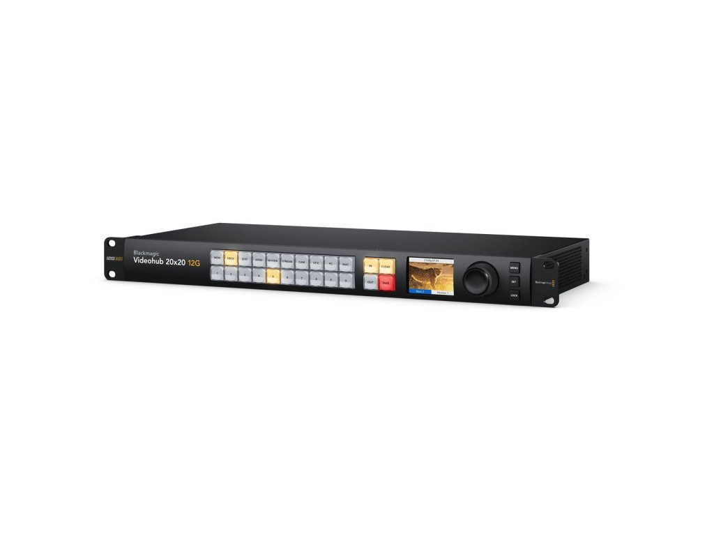 Trei modele noi de routere video Blackmagic Videohub 12G cu latență zero permit clienților să se conecteze și să direcționeze orice combinație de SD, HD și Ultra HD pe același router simultan. Modelele Blackmagic Videohub 12G au un panou frontal cu butoane de comenzi rapide, un LCD care poate afișa etichete sau videoclipuri live și un buton rotativ din metal prelucrat pentru a căuta sursele video.