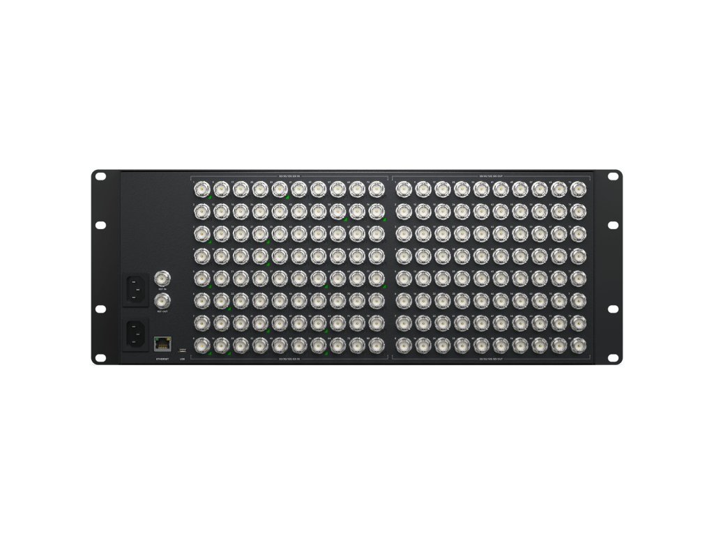 Modelul masiv 80x80 cu router video 12G-SDI cu latență zero acceptă orice combinație de SD, HD și Ultra HD pe router simultan. Include un panou de control, overclocking și control extern Ethernet.