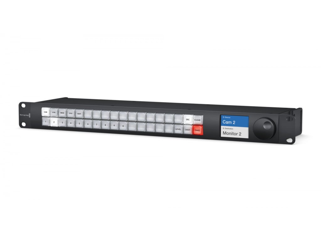 Panou hardware Ethernet cu buton rotativ. Videohub Master Control Pro este un panou de la distanță 1RU care vă oferă control deplin asupra întregului router de oriunde în studio. Pur și simplu conectați Master Control Pro la rețeaua Ethernet și veți avea control deplin asupra fiecărui punct de încrucișare de pe router. Panoul frontal include butoane programabile, un buton rotativ și un afișaj LCD elegant pentru a afișa desemnările sursei și destinației. Aceasta înseamnă că puteți vedea și direcționa toate intersecțiile de la distanță, chiar și pe cel mai mare Videohub!11/2019.