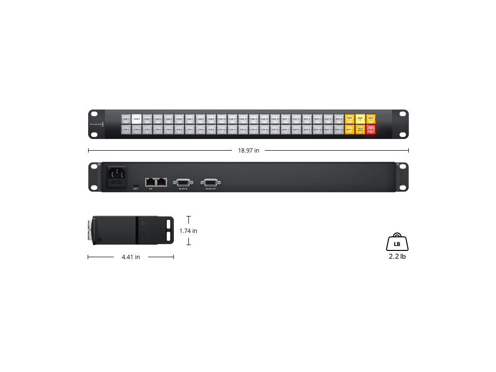 Videohub Smart Control Pro este un panou compact de 1 RU care vă controlează Videohub-ul prin rețeaua Ethernet existentă. Dispune de 40 de butoane personalizabile care pot fi setate la orice punct de încrucișare, astfel încât să puteți comuta rapid sursele video cu rutare directă rapidă, în stil „cut-bus”. Fiecare panou poate fi configurat pentru 1, 2 sau mai multe ținte, astfel încât să puteți controla rutarea video către mai multe punți și monitoare dintr-un singur panou!