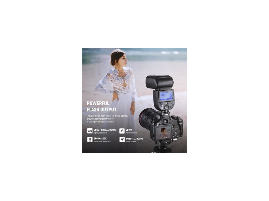 Blițul Neewer NW-760 pentru Canon (Pro) oferă o putere mare de 76W cu GN60, o temperatură stabilă de culoare de 5600K și acceptă modurile TTL/M/Multi flash.Parametri suplimentari