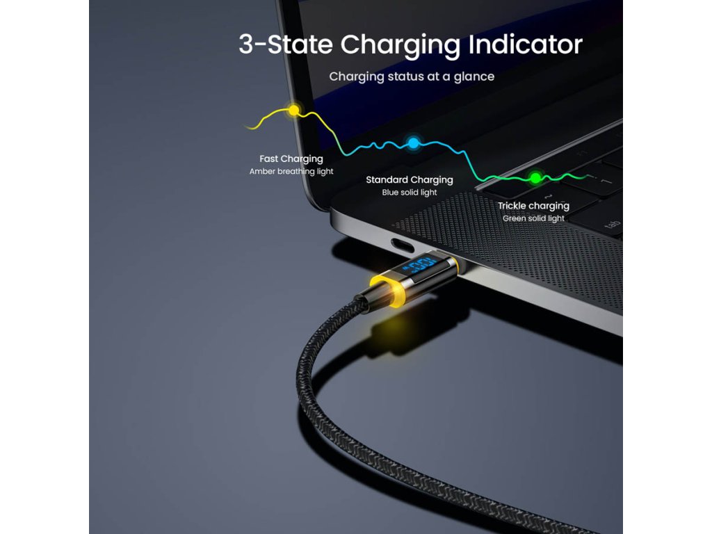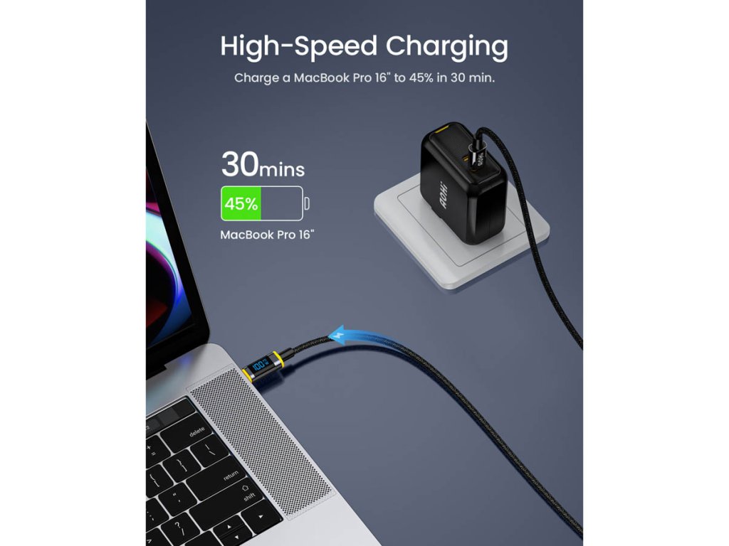 Magline PRO+ esteechipat cu un display digital practic. Pe el, puteți monitoriza performanța curentă în wați, la fel ca și dvsindică încărcarea cu tehnologia Power Delivery. De asemenea, vă arată grafic progresul încărcăriidiodă LED multicolorăGalbenul indică încărcare rapidă la putere maximă, albastrul indică viteză normală, în timp ce verdele indică încărcare lentă. În acest caz, vă recomandăm să achiziționați un încărcător mai puternic. Acest lucru vă va ajuta să utilizați pe deplin potențialul acestui accesoriu ingenios și să economisiți cu adevărat timp.Transfer de date uimitor de rapid pe care l-am așteptat cu toții