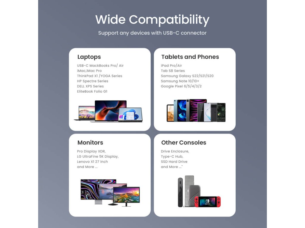 Și tu urăști sincronizarea lentă a datelor? Acea așteptare nesfârșită la transferul de fișiere? Exact asta e sfârșitul! Vei adora Magline pentru...viteză de transfer ultra mare de până la 40 Gb/s! Vă permite să transferați filme, videoclipuri, muzică și imagini odimensiune 5 Gb pe secundă - literalmente! Și cum altfel să te bucuri de film decât la calitate superioară. Suporturi pentru cabluriafișaj video la rezoluție înaltă 8K cu o rată de reîmprospătare de 60 Hz la conectarea unui monitor. Vă puteți bucura de o experiență vizuală grozavă și de o imagine clară chiar și atunci când este conectat la prizămonitor dublu. În acest caz, puteți aștepta cu nerăbdareCalitate 4K.