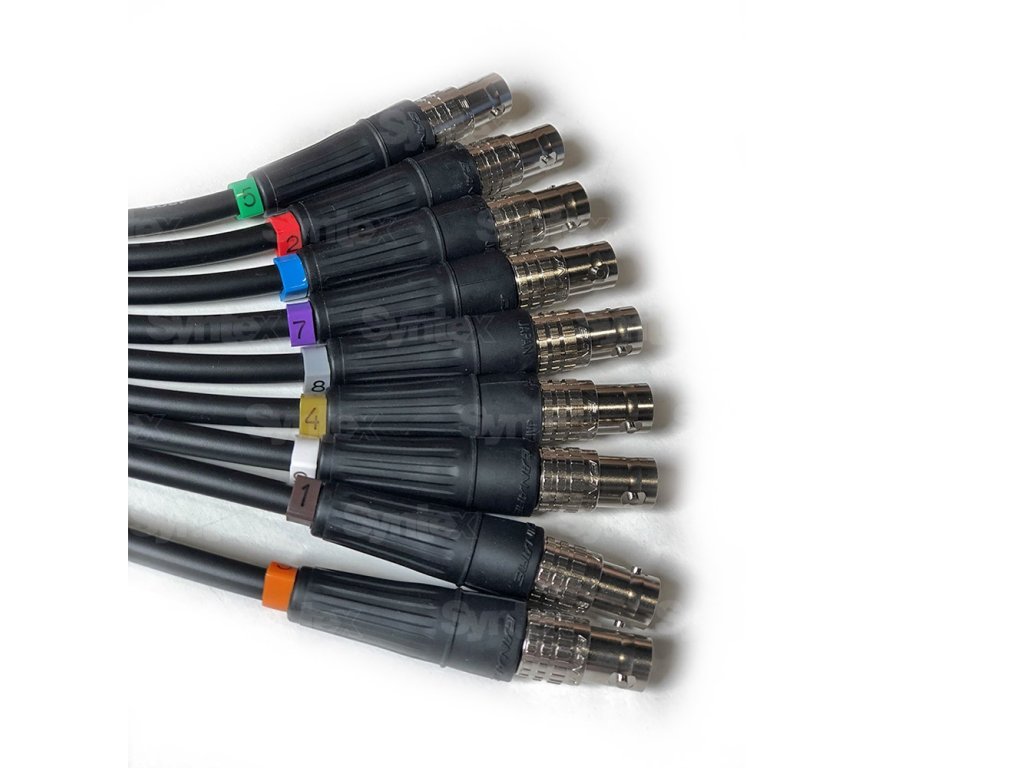 Set de 9 cabluri de conectare pentru cardurile Blackmagic Design DeckLink Quad. Setul de cabluri este realizat din cablu coaxial flexibil de înaltă calitate, conectori DIN 1.0/2.3 și BNC F de la producătorul japonez Canare.