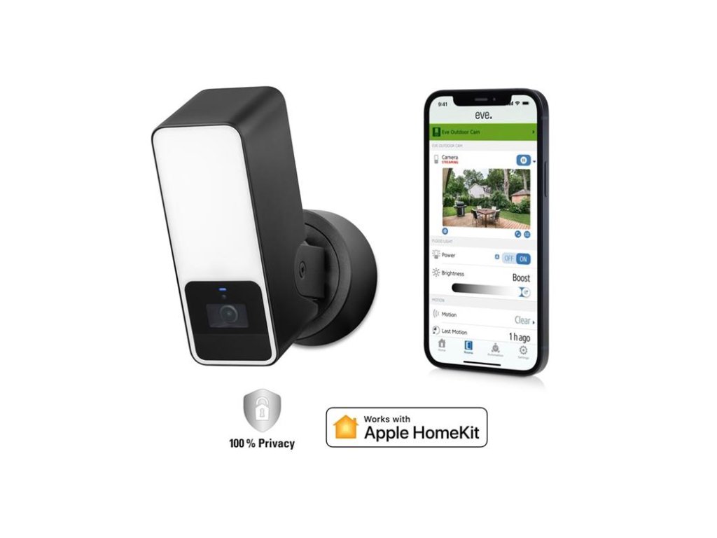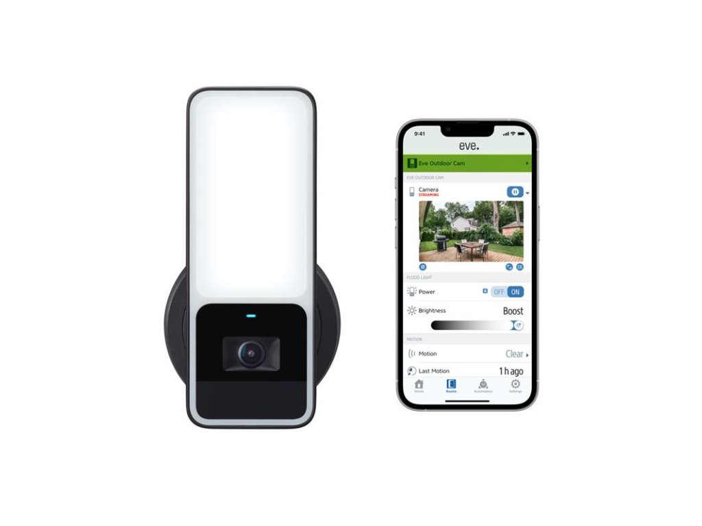 Eve Outdoor Cam este o cameră premium pentru exterior, concepută pentru Apple HomeKit Secure Video. Cu un câmp vizual de 157° și vedere nocturnă, vă oferă detalii clare zi și noapte. În plus, activează automat o lumină reglabilă atunci când detectează mișcare, astfel încât să puteți supraveghea fiecare colț al casei.