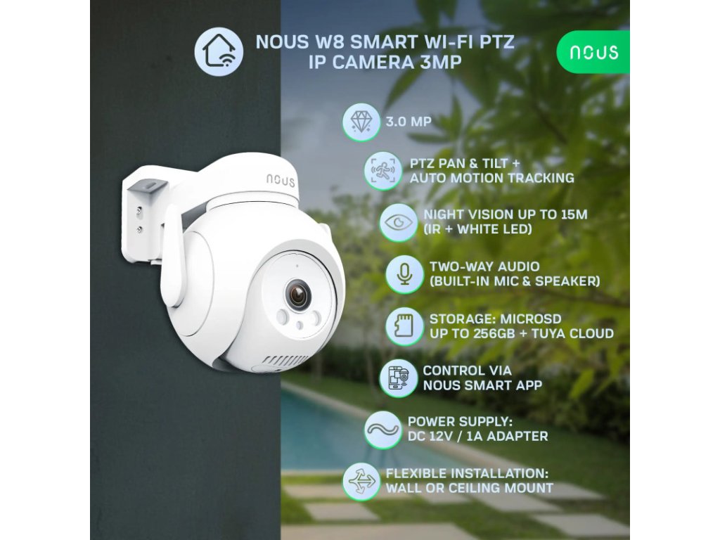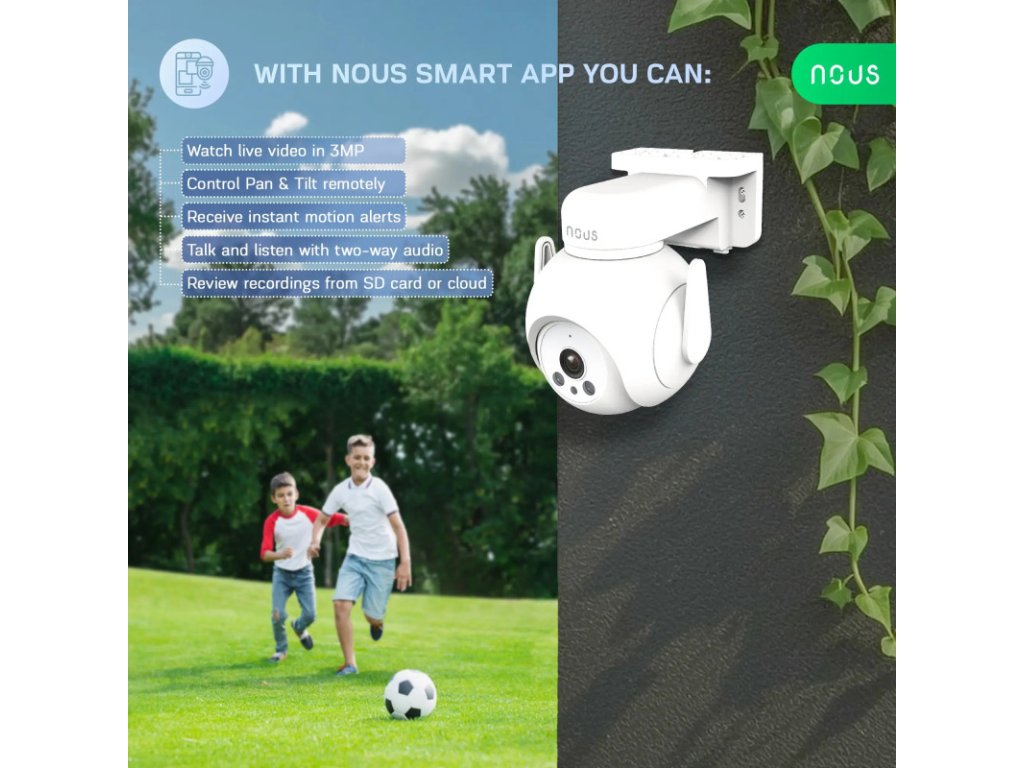 Cameră IP inteligentă PTZ pentru exterior Nous W8 WiFi 3MP Tuya