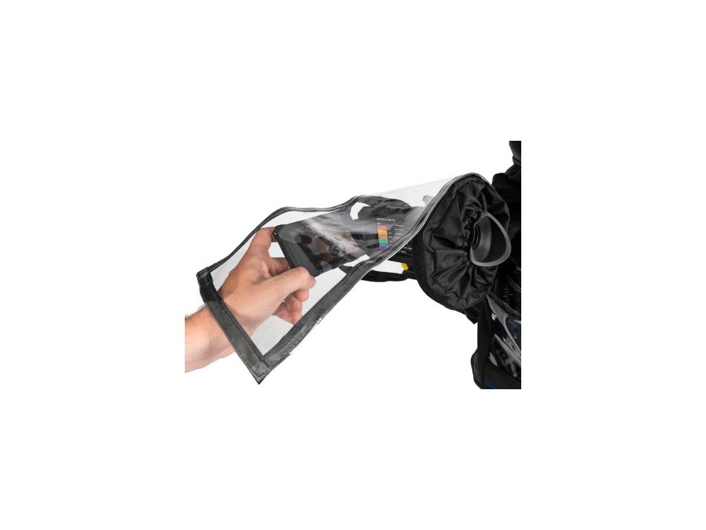Datorită benzii de cauciuc de 30 cm (11,8”), haina de ploaie se potrivește corect pe majoritatea lentilelor. Cureaua cu velcro furnizată permite strângerea capacului obiectivului, dar permite totuși controlul obiectivului datorită designului său încăpător. Lentila de extensie CL furnizată cu acoperă cu fermoar și protejează lentilele mai lungi. camRade oferă un kit suplimentar de extensie camRade rainCover (SKU: CAM-RAINCVR-KIT) pentru a proteja mânerul, monitoarele/recorderele de 5” și 7” și lentilele mai lungi.