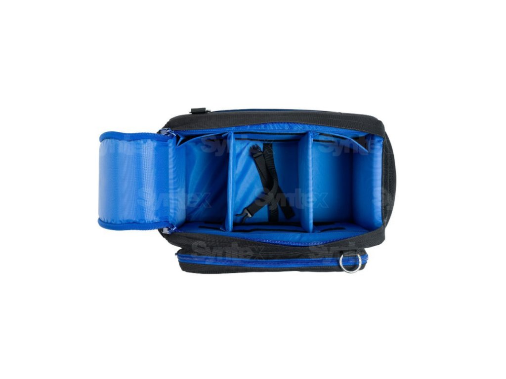 Această geantă are fermoare duble (albastre) YKK® care deschid clapeta superioară cu o simplă tragere. Păstrați-vă camera, accesoriile, bateriile, încărcătoarele, cablurile și uneltele în această run&gunBag ușor de utilizat de la camRade.