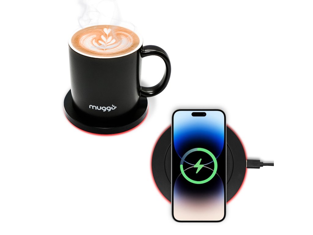 Conexiunea dintre cana inteligentă Muggo Volt și farfuria de încălzire funcționează fără a fi nevoie să conectați cana cu farfuria folosind cabluri. Cum este posibil? Pur și simplu wireless! Dezvoltatorii Muggo au acordat atenție detaliilor când au dezvoltat cana inteligentă Muggo Volt, așa că pur și simplu așezați o cană sau un telefon mobil deasupra farfurii, iar cana inteligentă Muggo Volt se va ocupa de tot pentru dvs.!