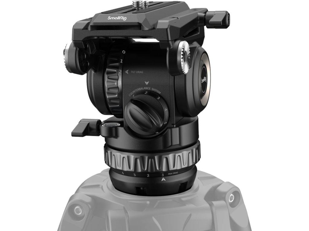 Sistemul de amortizare hidraulic reglabil în 4 trepte permite reglarea rotației și înclinării și asigură rotirea și înclinarea lină a camerei.
