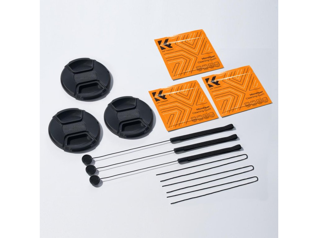 - ?9 în 1?: Acesta este un kit 9 în 1, care include 3 capace pentru lentile și 3 frânghii anti-pierdere și 3 cârpe de curățat cu aspirator ambalate individual.