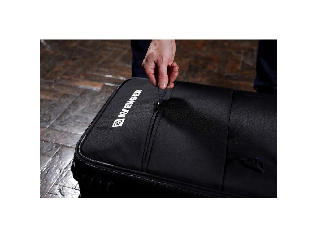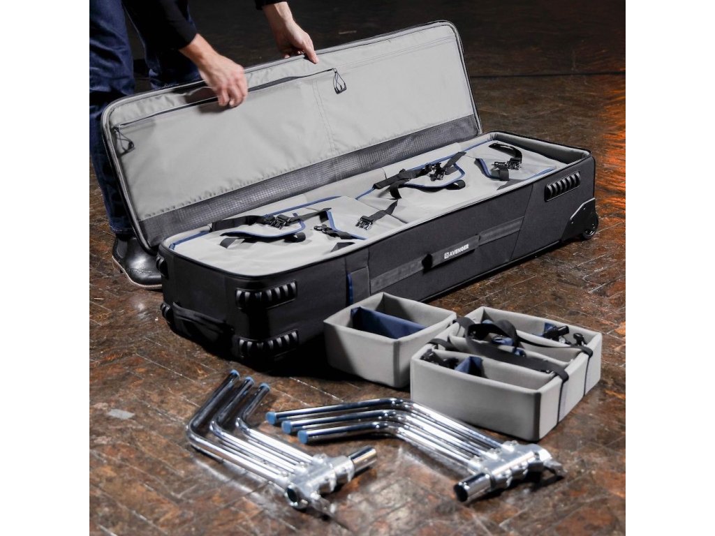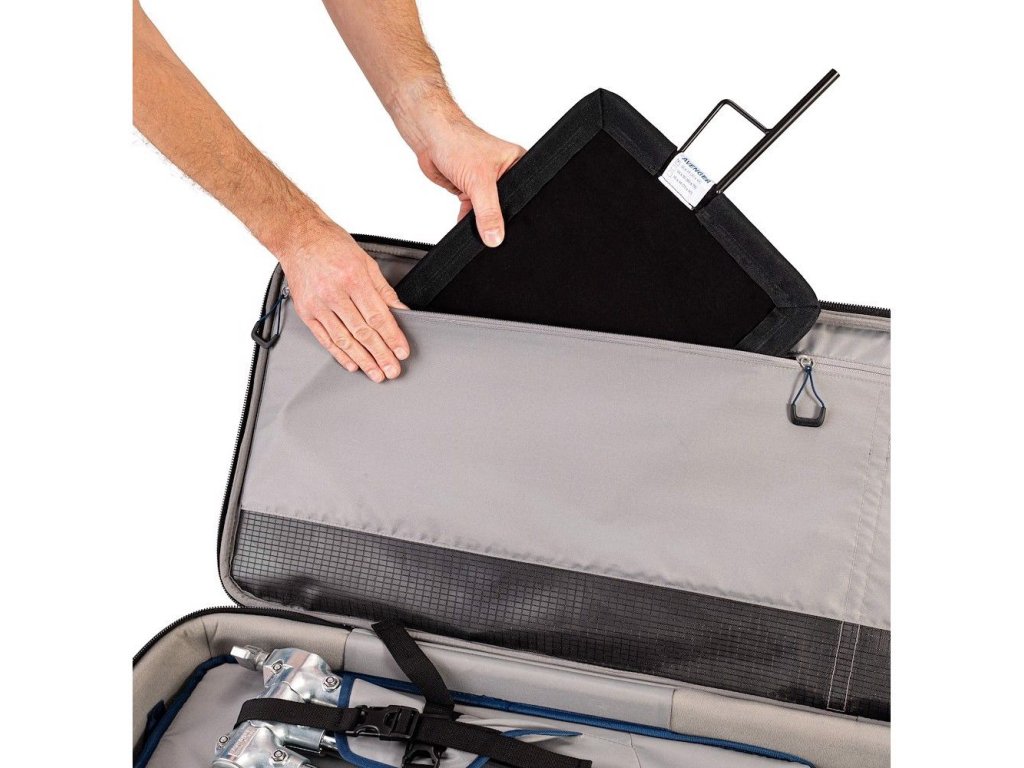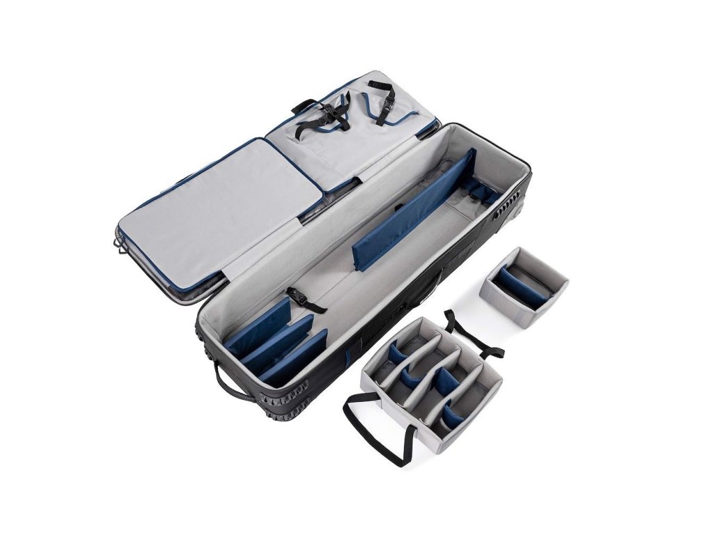 Cu dimensiunile sale exterioare de 128 cm x 28 cm x 40 cm (50,4 in x 11 in x 15,7 in), această geantă cu roți are o capacitate mare de depozitare și poate suporta o sarcină maximă de 35 kg (77,1 lbs). Compartimentul principal spațios este adaptat pentru a transporta până la trei seturi de suport C (detașabil) și accesorii pentru broasca testoasă. Compartimentul principal spațios are compartimente despărțitoare din spumă cu celule închise, reticulate, de înaltă densitate, pentru a crea trei secțiuni pentru stâlpii C detașabili și o a patra secțiune cu curele întărite reglabile. depozitați brațele extensibile în siguranță. Include două tăvi de depozitare căptușite detașabile, ideale pentru capete de prindere, cleme și alte accesorii mici pentru a păstra echipamentul în siguranță.