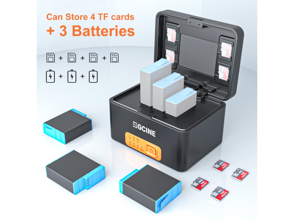 Carcasă de încărcare pentru baterii ZGCINE GoPro (3 biți + baterie 3-901)
