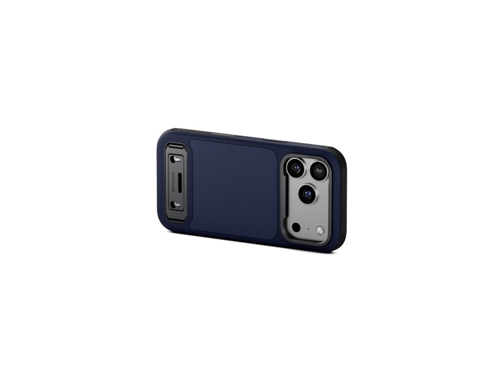Carcasă Tilta Khronos LiteAlbastru marineste o husă de protecție ușoară, de calitate profesională, concepută special pentruiPhone 17 ProEste echipat cu un sistem încorporatsuportpentru vizualizare hands-free șiplacă magnetică din spatepentru atașarea accesoriilor șiprotecție întărităpentru cameră și claxoane.