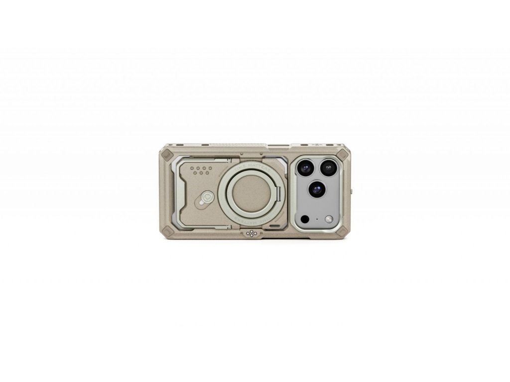 Carcasa Tilta Khronos pentru iPhone 17 Pro, de culoare bej, este o husă premium cu folie pentru mobil, concepută exclusiv pentru iPhone 17 Pro. Cu un design cu eliberare rapidă, un sistem integrat de alimentare electronică și un sistem de blocare sigur, aceasta este compatibilă cu o gamă largă de accesorii, cum ar fi mânere de focalizare, module de răcire, filtre și hub-uri USB-C, pentru un control creativ sporit.